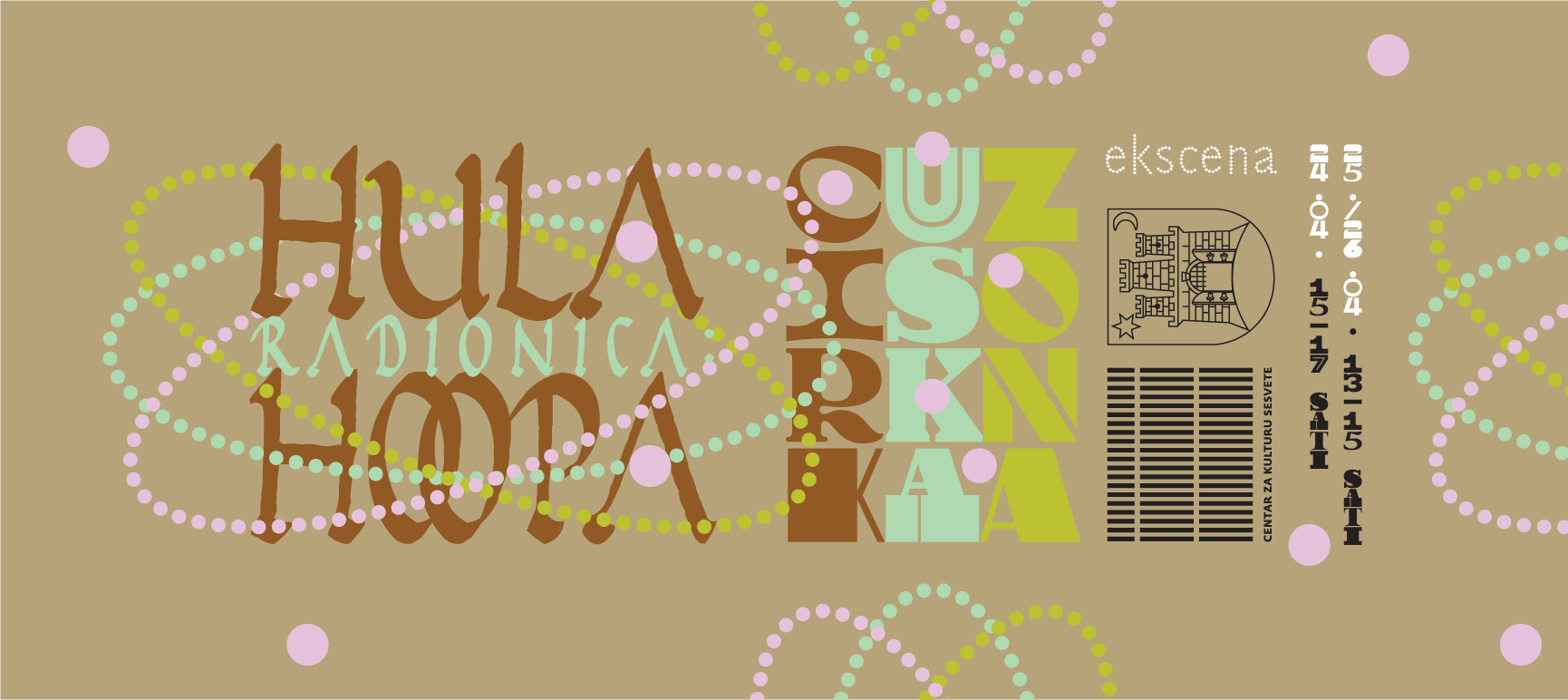 Radionica HULA HOOP u sklopu projekta Cirkuska zona Petak, 24. travnja 2026. Otvorena scena Centra za kulturu Sesvete od 15.00 do 17.00 sati U slučaju lošeg vremena plesna učionica 2. kat Radionica je besplatna