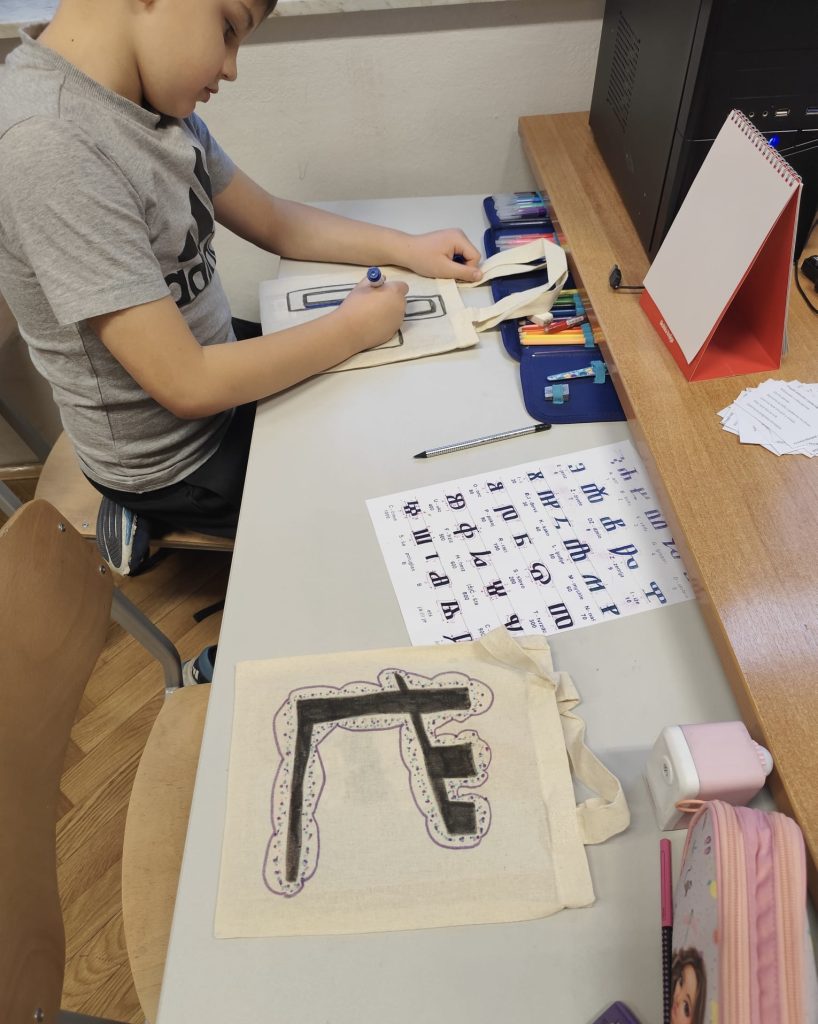Svaki od učenika napisao je svoje ime glagoljicom, a zatim i na eko platnenoj vrećici koju su ukrasili ‘najdražim’ slovom i obojali.